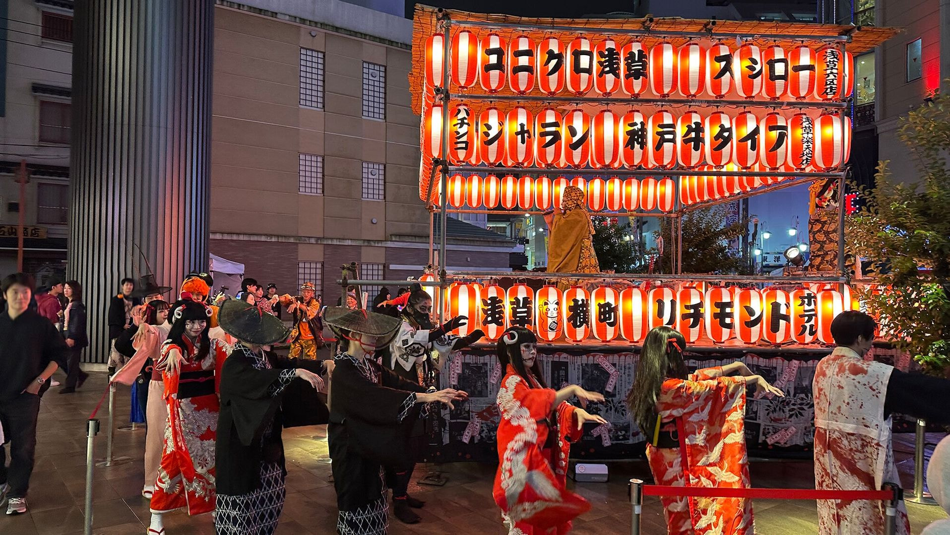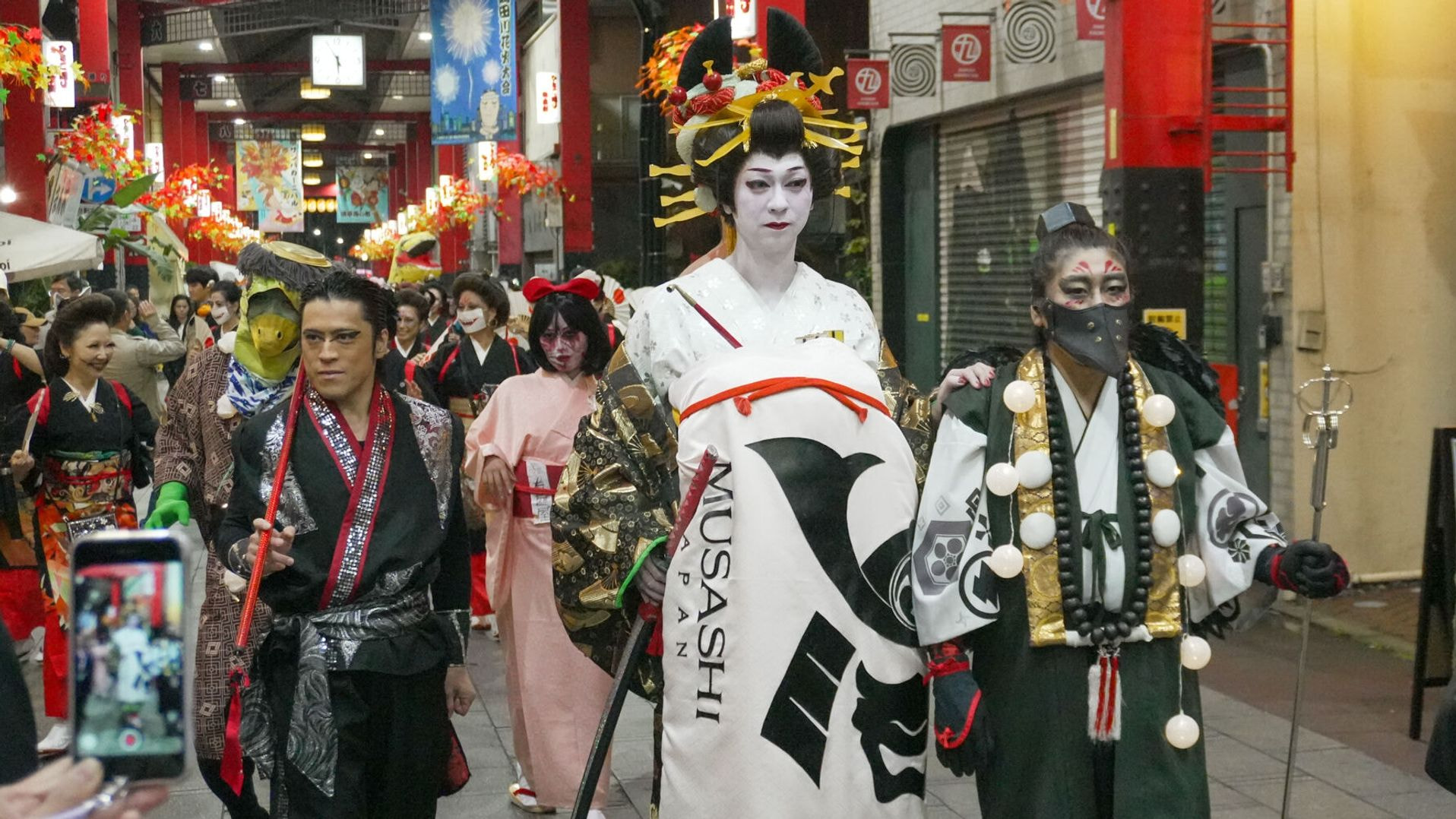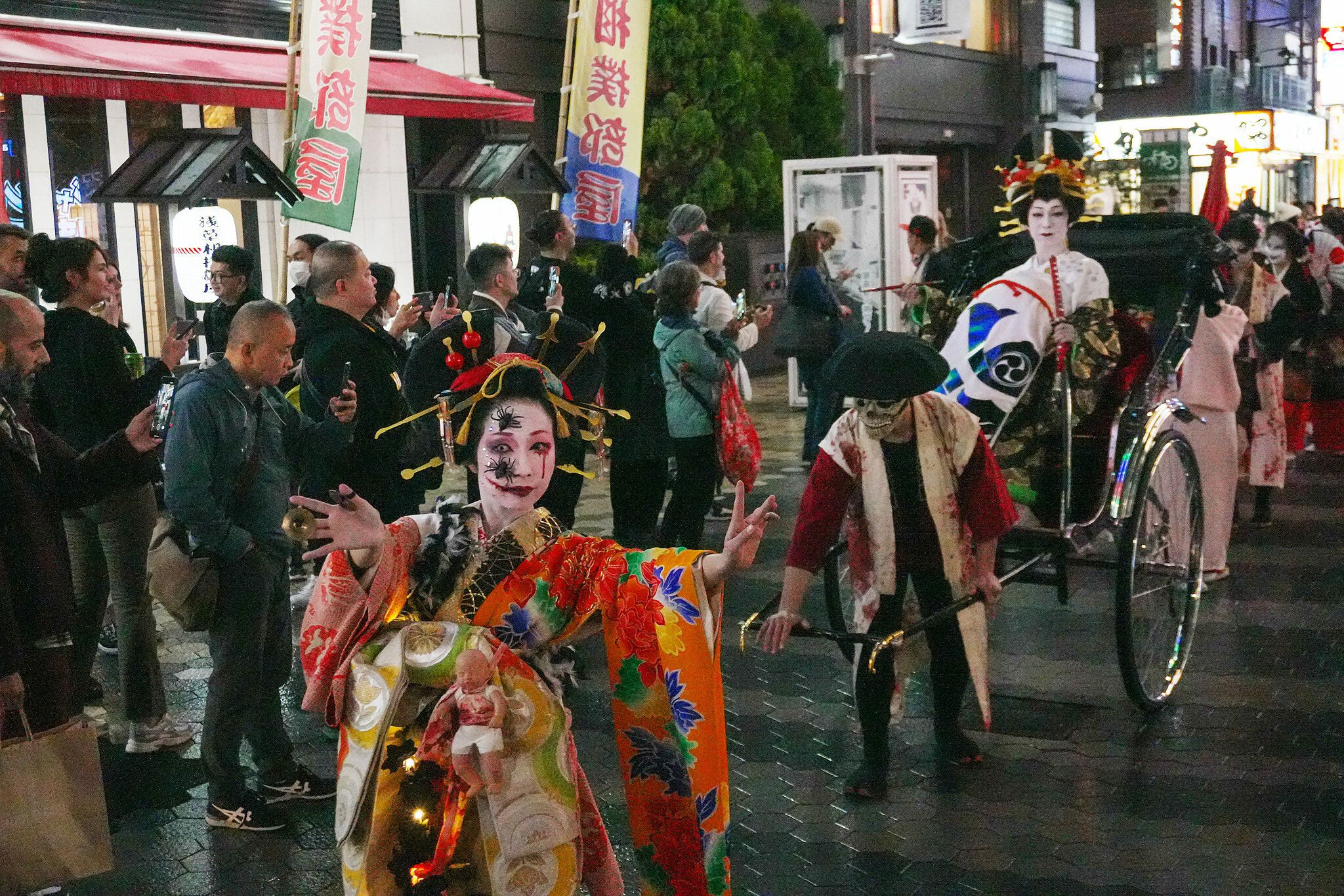 妖怪たちが吉原⽅⾯から「百⻤夜⾏(パレード)」で登場。