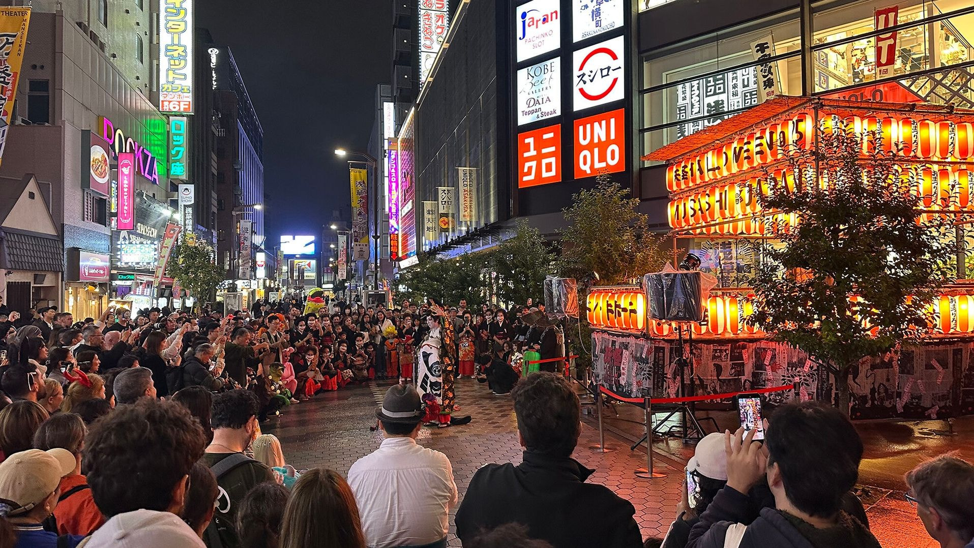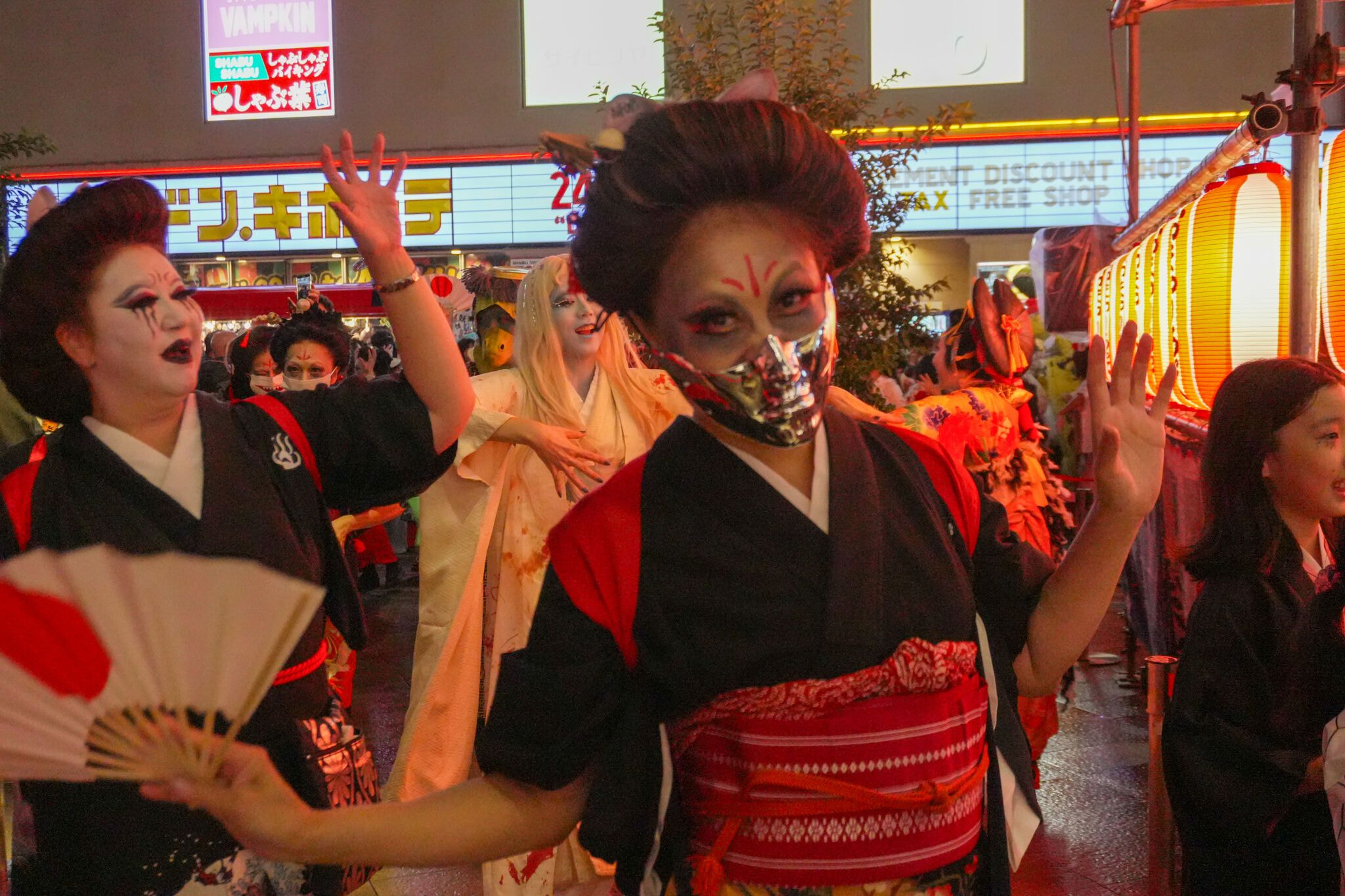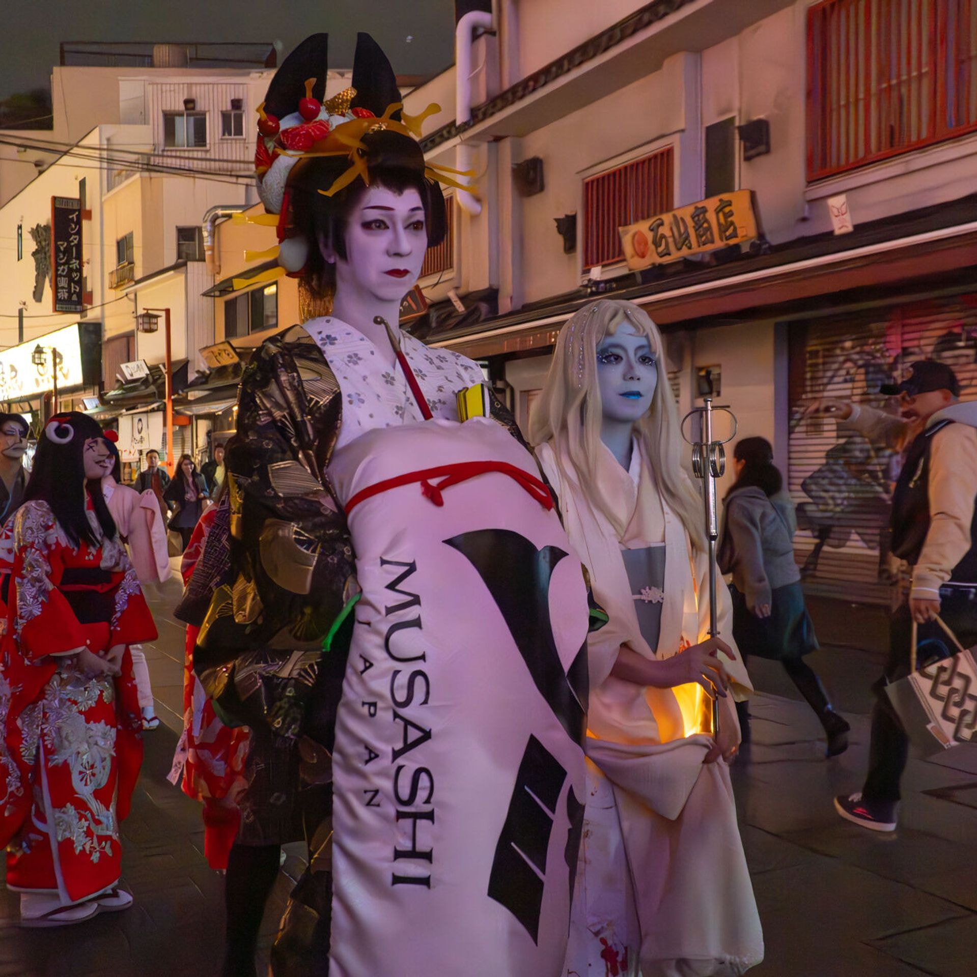 妖怪たちが吉原⽅⾯から「百⻤夜⾏(パレード)」で登場。